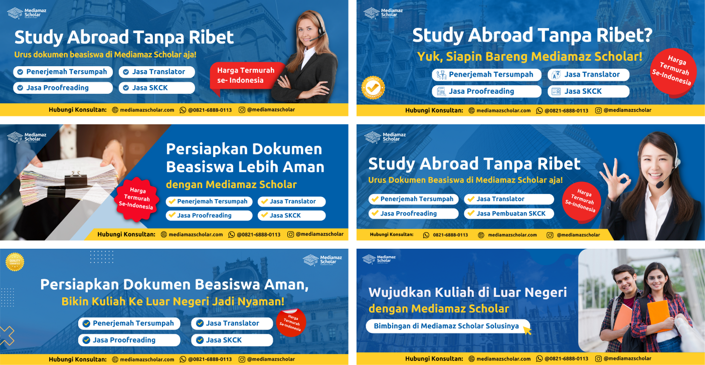 New Services is a new Mediamaz Scholar program consisting of English lessons, TOEFL tests, TOEIC tests, and other English language programs to prepare for scholarships abroad. The following are some of the promotional media created to introduce these new services to potential customers.