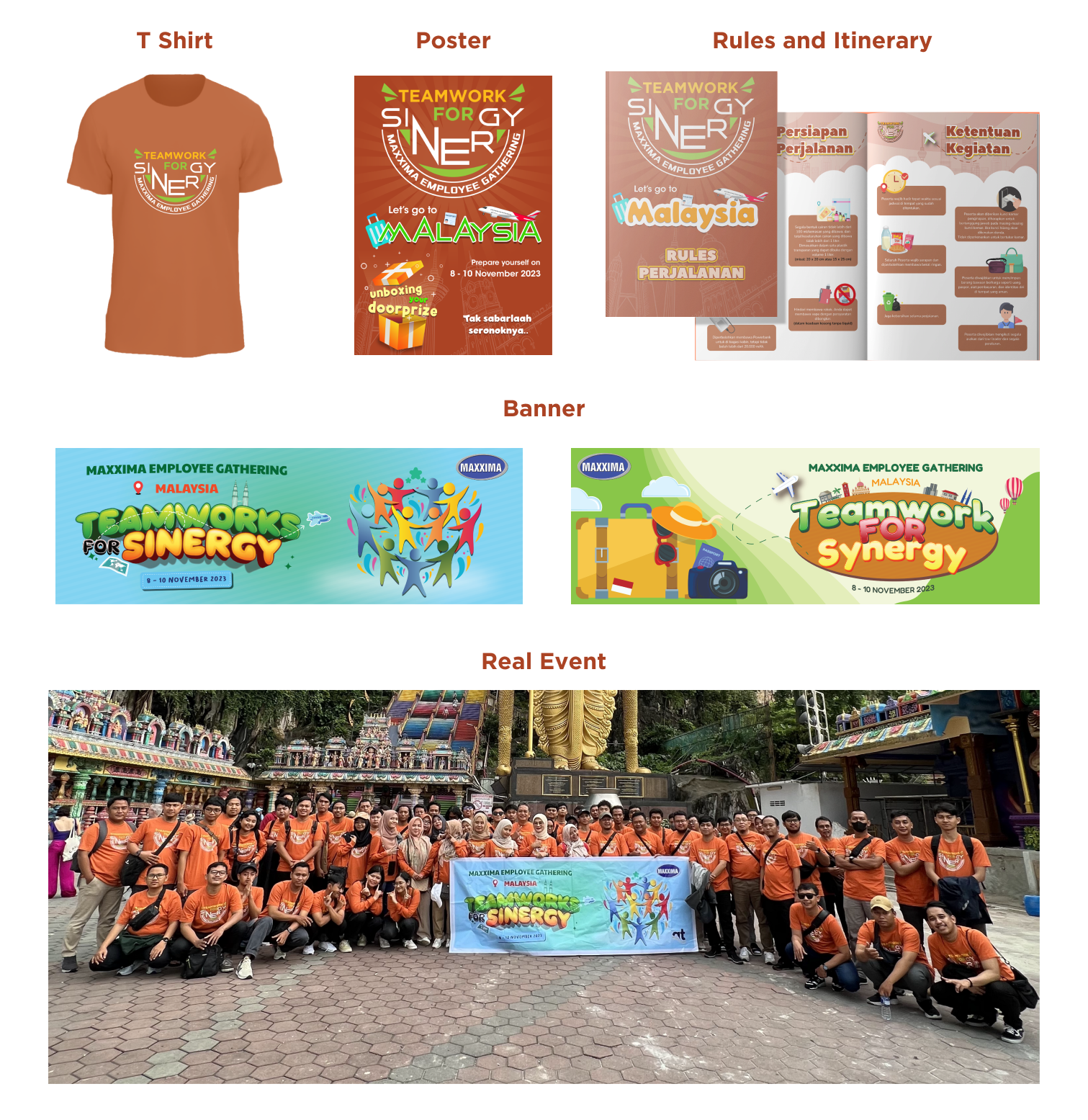 Teamworks for Sinergy is the theme for Maxxima's 2023 office outing to Malaysia. This theme carries the idea of togetherness and excitement that should be felt when going on an office outing together with other employees.
