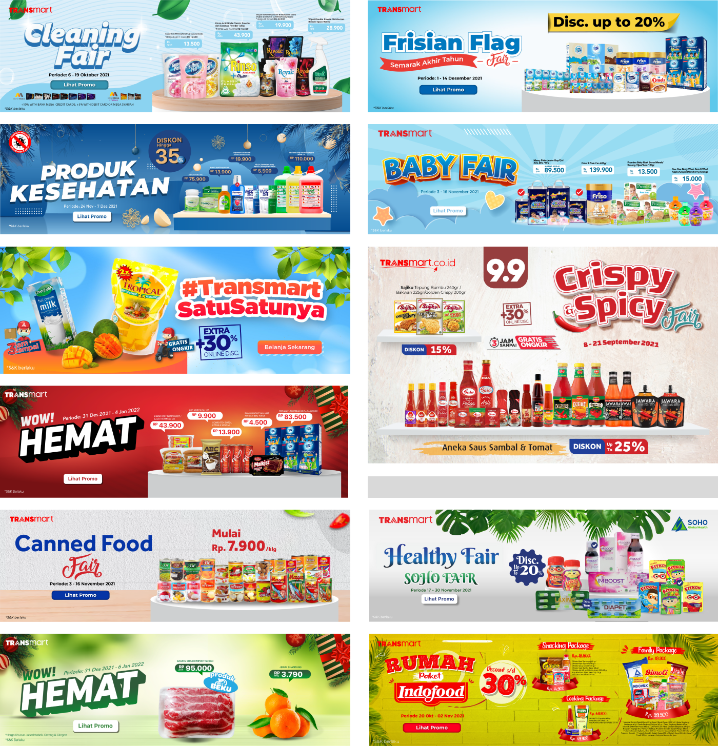 transmart.co.id is an e-commerce service created by Transmart and Trans Retail Indonesia to make it easier for customers to shop at transmart without coming to the store. The designs created are homepage banners and promotional catalogs.