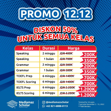 Mediamaz Scholar has sales products in the form of sworn translator services, proofreading services, sketch making services, English classes and English language tests. Here is a promotional design created for Instagram selling content.
